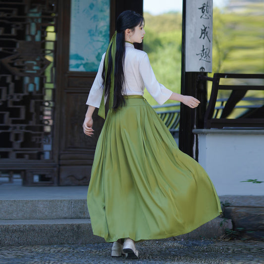 【青衫映柳】新中式缎面上衣改良马面裙套装春夏汉服女