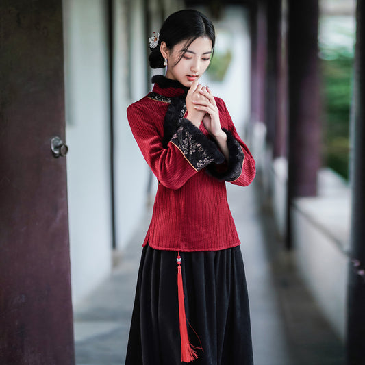 【醉红妆】新中式加绒立领上衣秋冬汉服女
