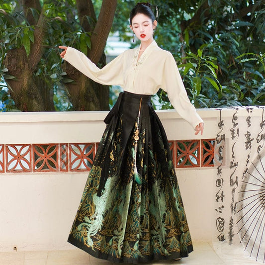【青鸾】宋制飞机袖明制印花马面裙春秋汉服女