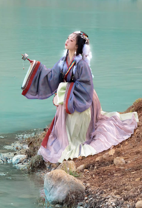 【陌上桑】晋制交领襦齐腰交窬裙春夏汉服女
