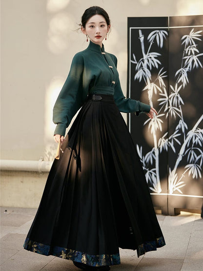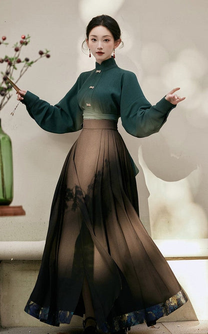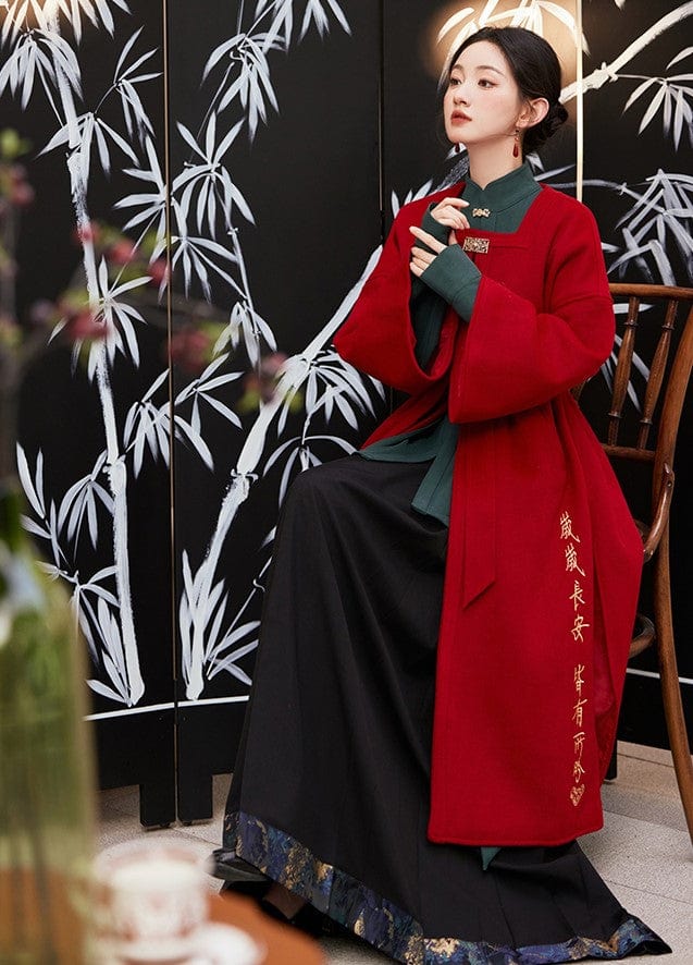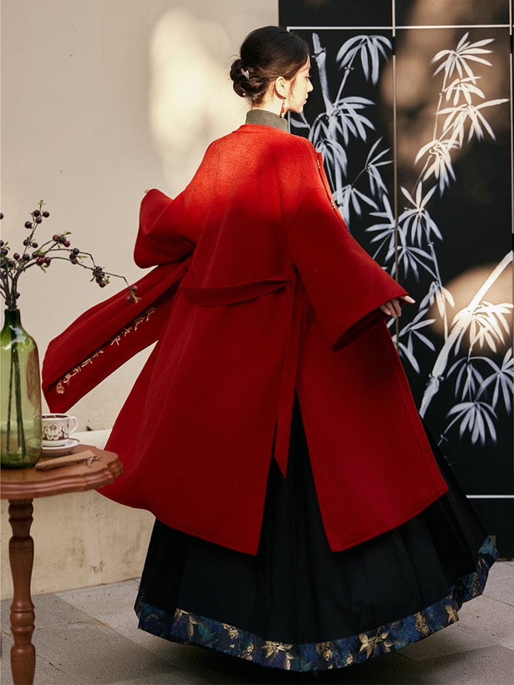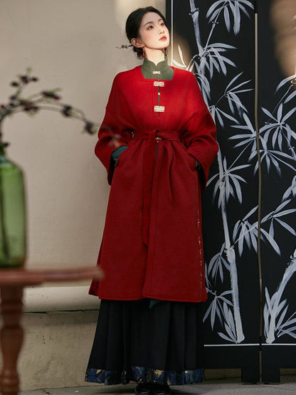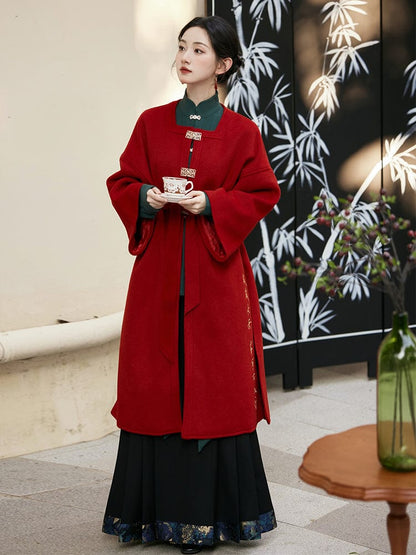 【柏酒浮春】汉元素呢子披袄立领对襟衫改良马面裙秋冬汉服女