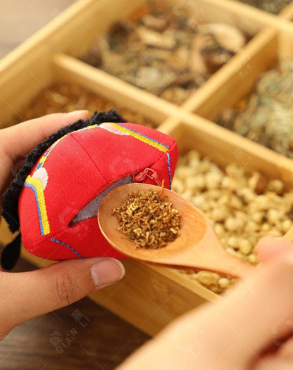 香囊是古代女子创造的一种民间刺绣工艺品,又称香包,荷包,香袋,是跨越千年而余绪未泯的汉族传统文化的遗存和再生。中国传统的香囊多用绸布制成,内装雄黄、艾叶等香料。香囊大多以花卉和动物为主图,以隐喻象征等手法表达各种情感寄托和美好向往。